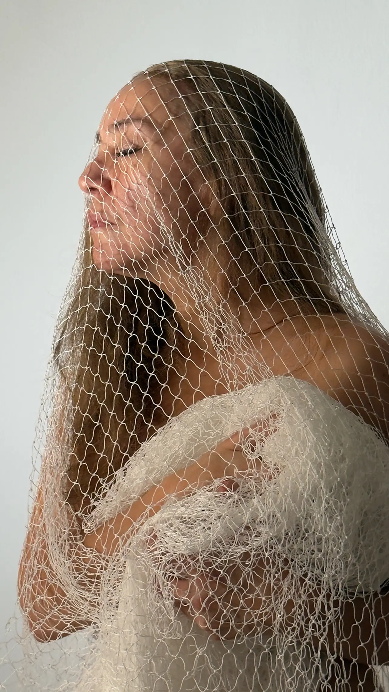 Performative dress with gillnet fishing net, 2025