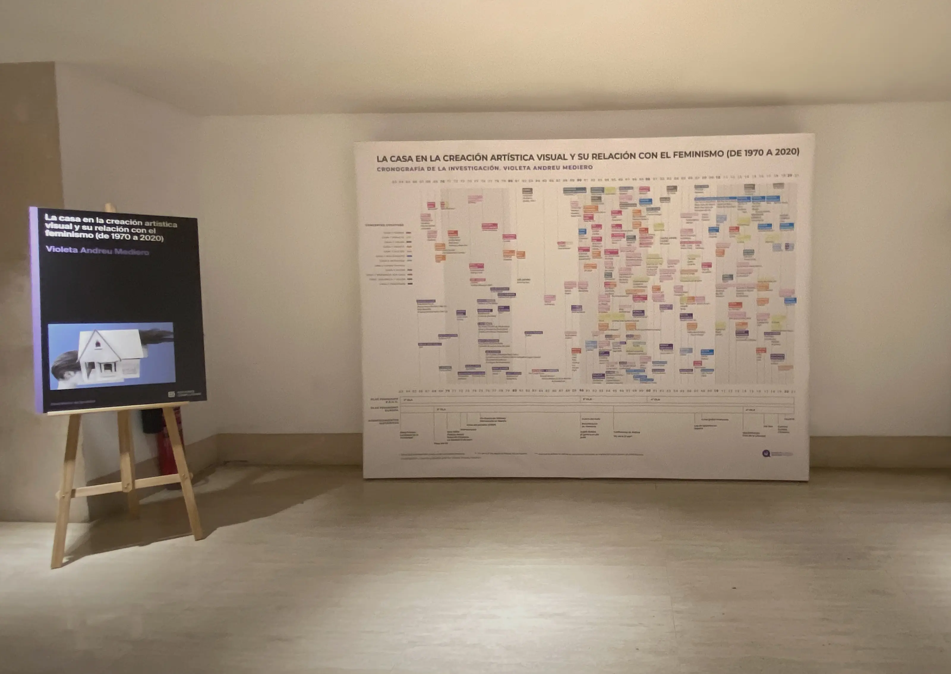 In this work, Andreu reflects on the research carried out in her book, The House in Visual Artistic Creation and its Relationship with Feminism (1970-2020). It visualizes and connects the creative concepts employed by relevant artists during that period; the works analyzed; the development of the feminist social movement; and other social events of interest, all arranged chronologically.