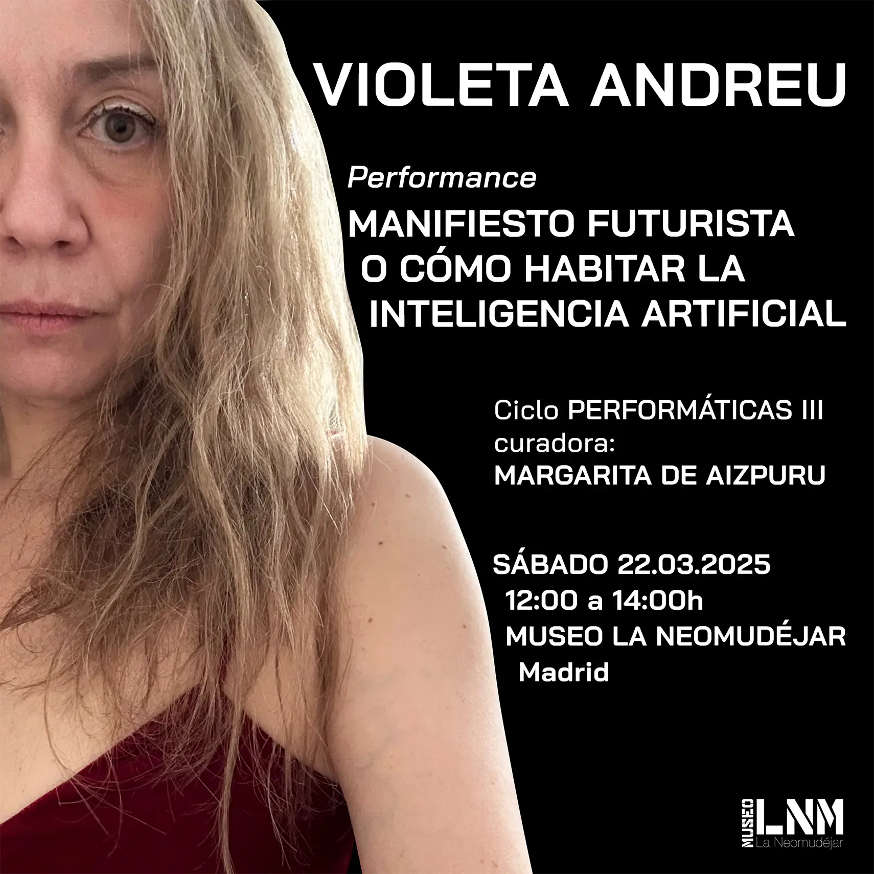 FUTURIST MANIFESTO OR HOW TO INHABIT ARTIFICIAL INTELLIGENCE is part of the PERFORMATIC PERFORMANCES III Cycle, curated by Margarita Aizpuru.
