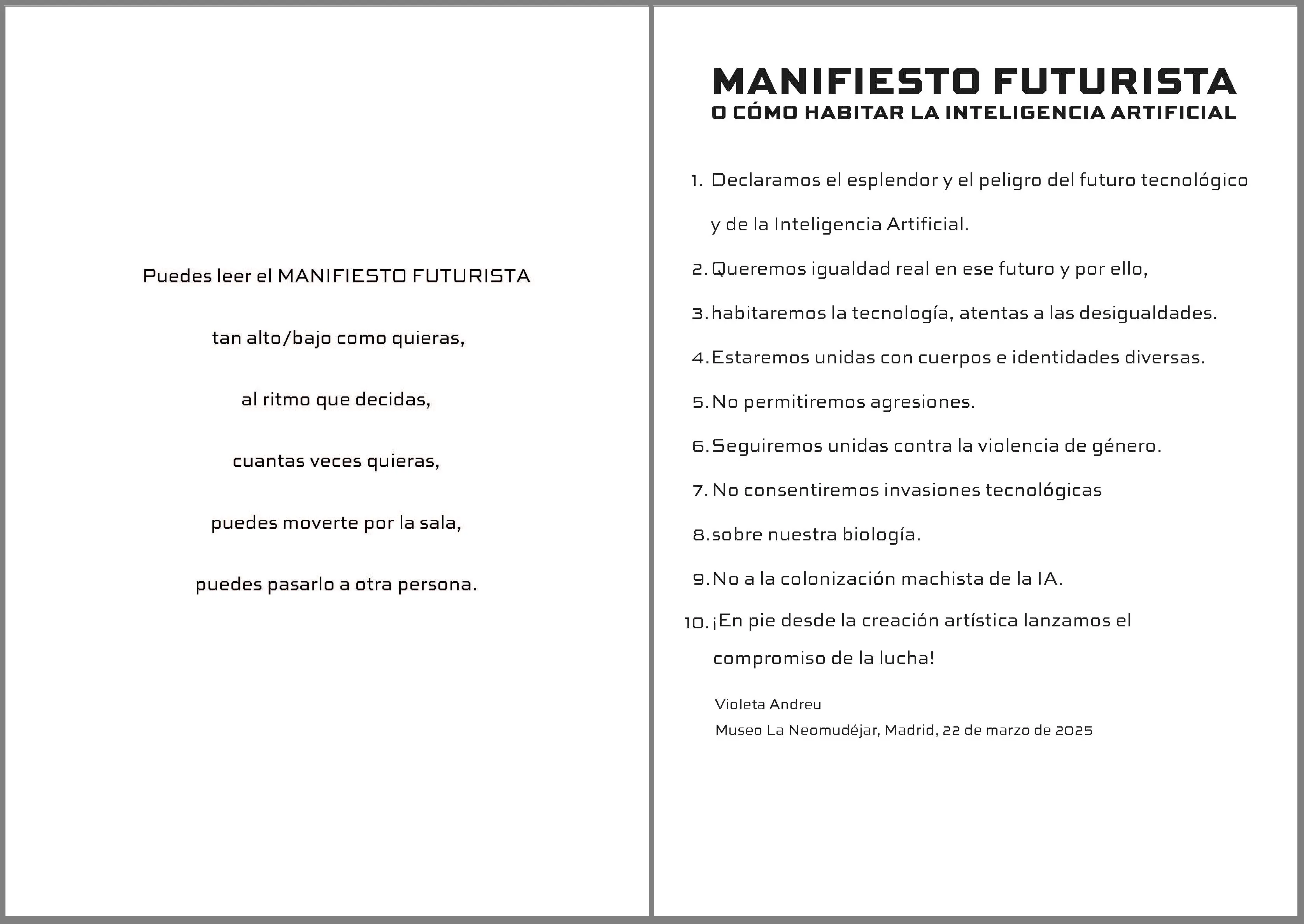Futurist manifesto or how to inhabit artificial intelligence/ Manifiesto
