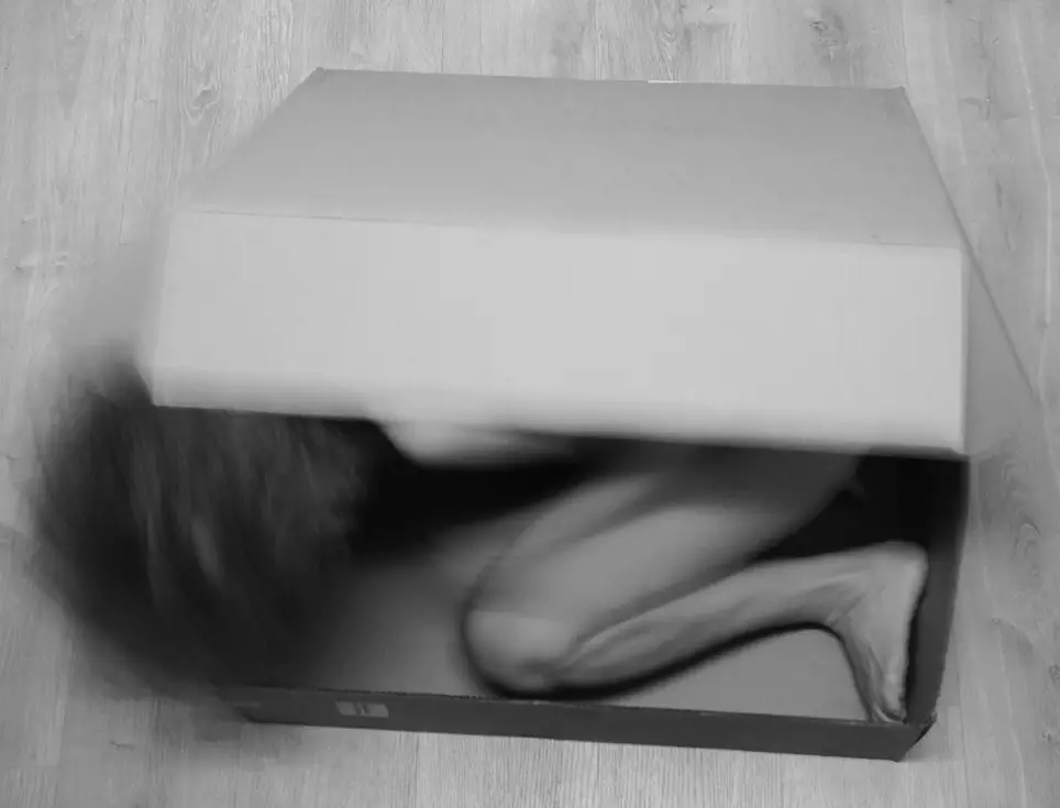 The performance took place in the artist's studio in Madrid, Spain, as a domestic space open to the public on February 2, 2022. In it, Andreu emerges naked from inside a cardboard box and begins to move, trying to remove the cardboard lid. The performance unfolds in silence.