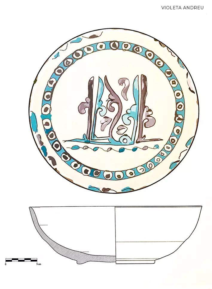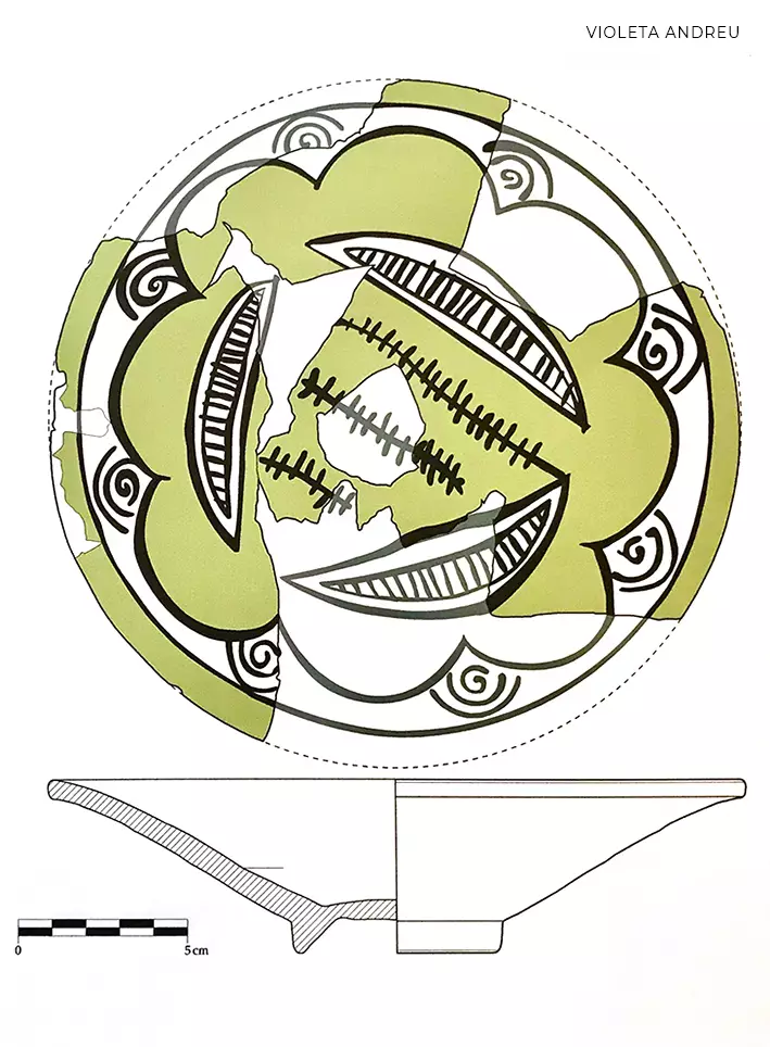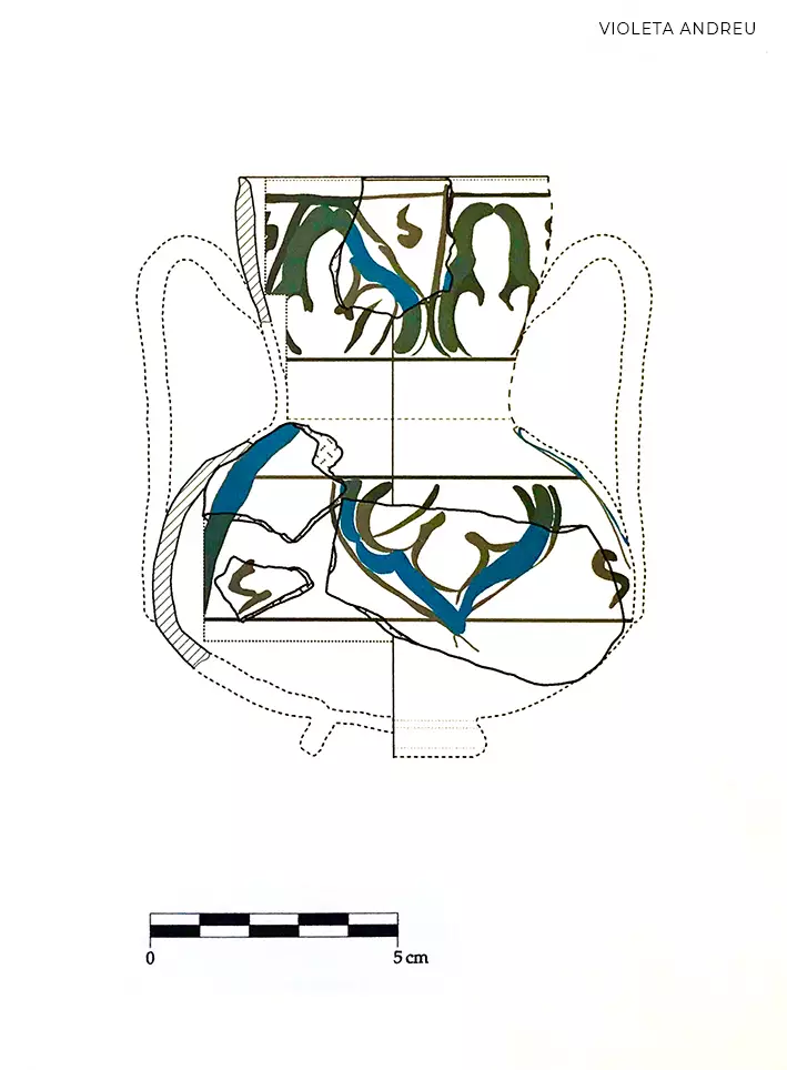 From 1991 to 2000 Violeta Andreu worked as a draughtperson of archaeological material, computer graphics, painter, graphic designer and was in charge of computerizing the graphic documentation of archaeological excavations. She made drawings and reproductions of paintings of archaeological materials that were used in projects and exhibitions and developed exhibition projects of archaeological pieces.