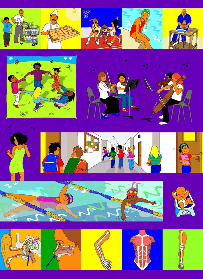 Violeta Andreu is a draughtperson, illustrator, analyst of pictorial techniques and designer, and has worked with companies and individuals as a freelance since the 1990s. She has collaborated in Educational Innovation with Publishers such as SM or ANAYA, among others, making hundreds of drawings for educational projects for ages ranging from infants to Baccalaureate. In these jobs she has also been in charge of creating multimedia animations, with audio integration and interface design.