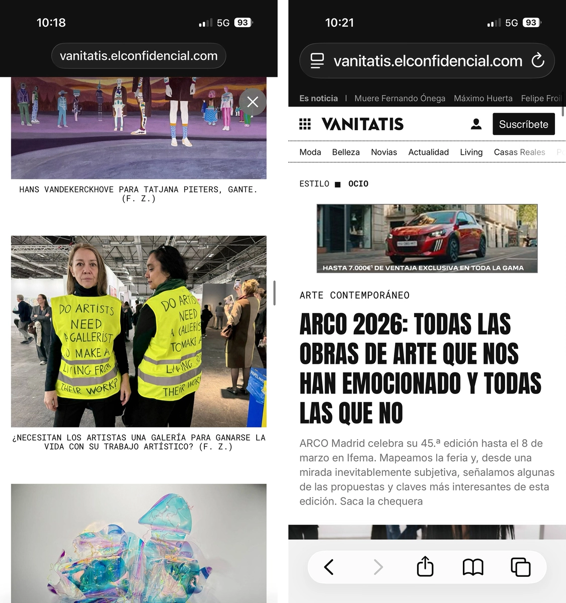 A LIVING FROM THEIR WORK? (Fotografía: Mercedes Melero)Capturas de pantalla con la publicación en VANITATIS de DO ARTISTS